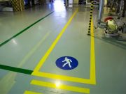 Поэтому складская разметка краской более широкого спектра действия. Она не только может зонировать участки склада, но и выполнять функции эвакуационной разметки, определять маршруты движения транспорта и рабочих.